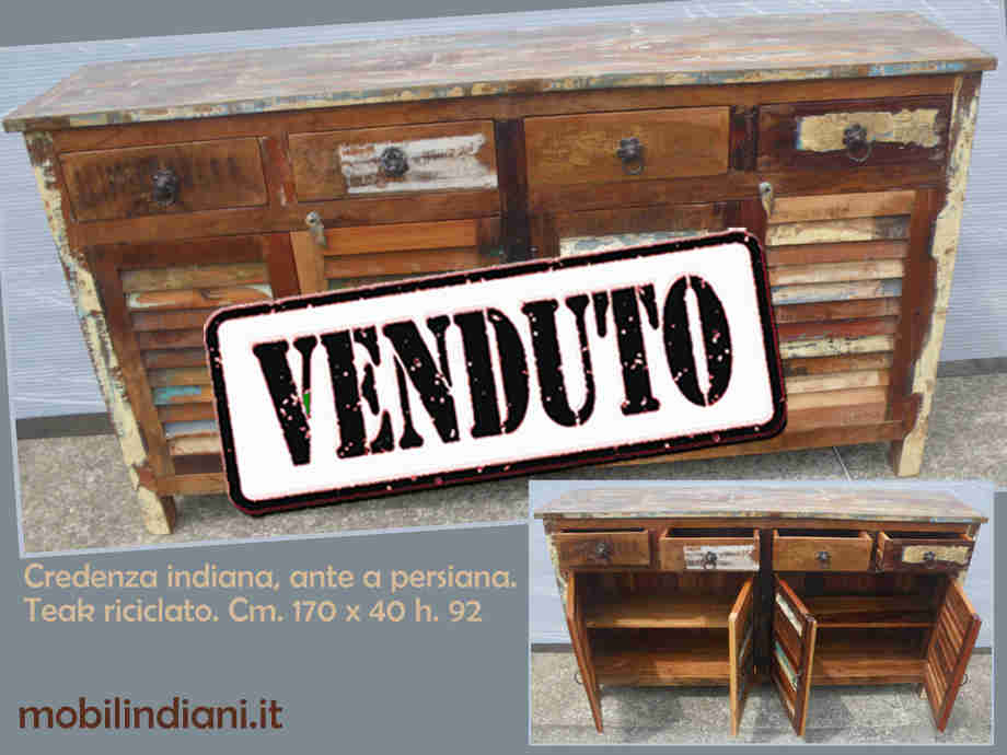 Disponibilità 0Credenza orientale legno teak massello riciclato. 4 ante tapparella + 4/cass. E' stata appositamente lasciata la sua patina originale. Restauro incluso. Cm.170x40 h.92 Paese India
