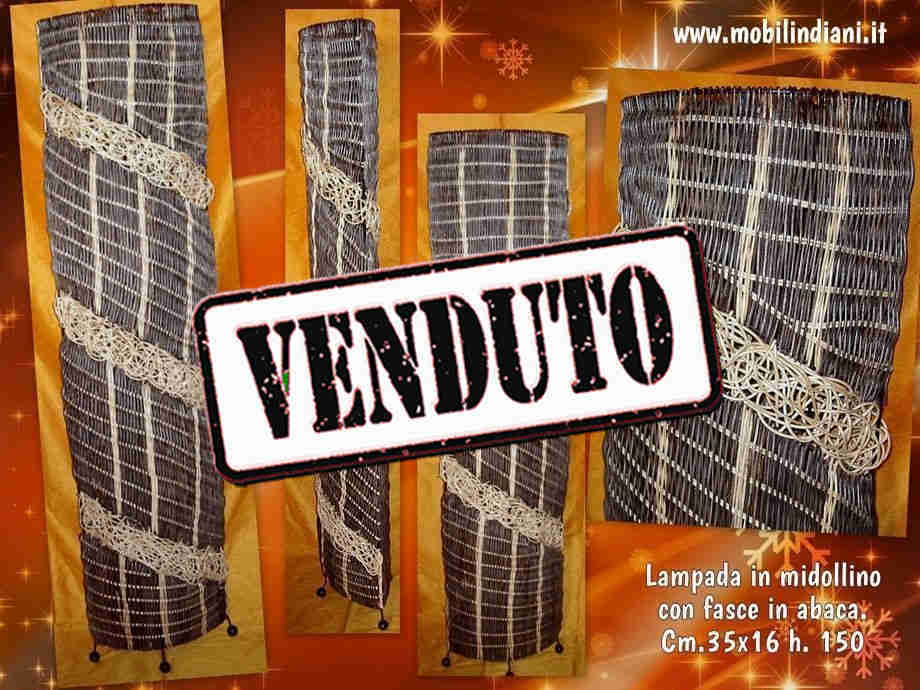 Lampada etnica, abaca e midollino. Cm. 35 x 16 h.150