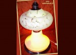 Lampada di Murano anni '70 Bellissima lampada vintage da tavolo in vetro bianco con dettagli cromati, ottime condizioni. Alloggiano internamente 4 lampadine. Cm.67 Diam. cm.40