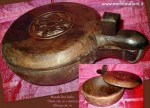 Scatola indiana. Diam. 22 + manico h.10cm. Coperchio girevole
